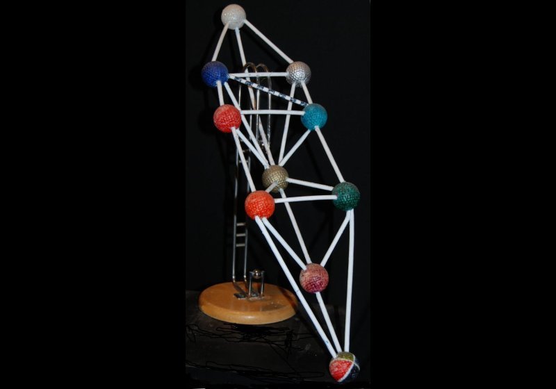 Mix media composition (straws - duff balls) - 28"X7"X4"