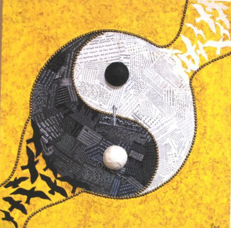 Mix media composition (paint on wood – collage ) – 40″X40″